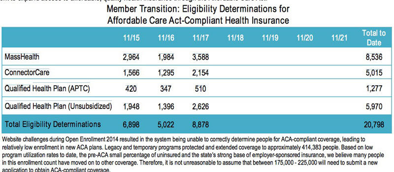 In addition, see that first "MassHealth" (Medicaid) number? That one should be a "hard" number each day because they're set up to automatically kick the enrollments into effect immediately, which is very nice.