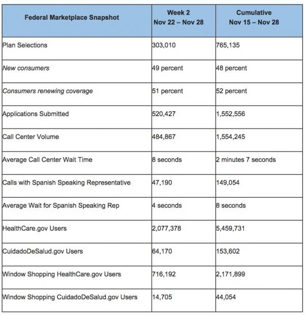 I called the 11/28 HC.gov total as 780K; the actual number was 765,135, so I overshot by 1.9%. I recently started separating HC.gov QHPs ("plans selected") from the total since some people forget that HC.gov only makes up around 75% of the total nationally.