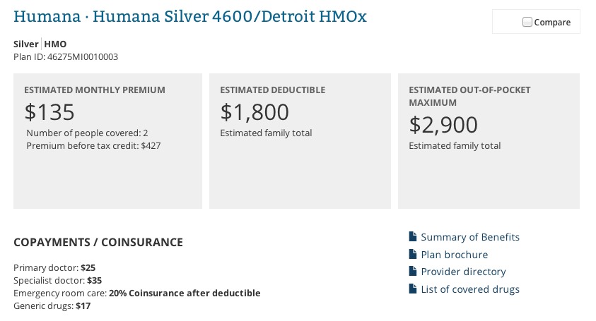 Their kids qualify for the CHIP program. For the 2 adults, they decide to go for a Silver Humana HMO with an $1,800 deductible.