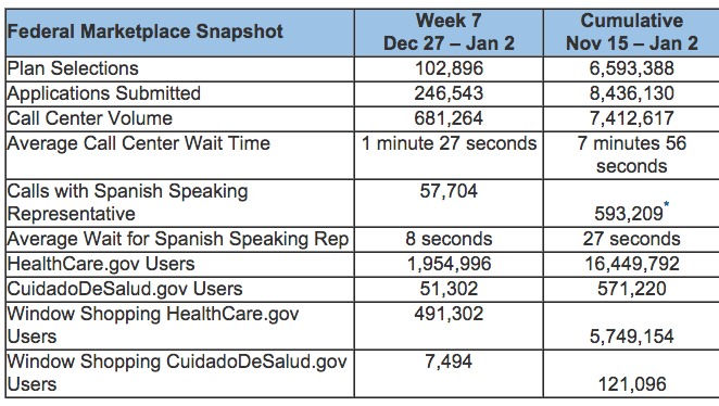 ...HHS produces more detailed reports that look at plan selection across the Federally Facilitated Marketplace and State-Based Marketplaces on a monthly basis. The first Open Enrollment monthly report was released on December 30. Weekly snapshots do not include the consumers who visited, called, shopped or selected a plan through a State-Based Marketplace.