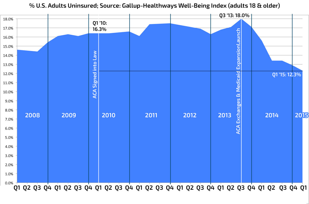That doesn't mean that those 2.3 million "sub26ers" shouldn't "count", but in terms of the total NET uninsured rate going down due to the Affordable Care Act, that didn't clearly kick into effect until the 4th quarter of 2013, when the ACA exchanges and Medicaid Expansion enrollments started up.