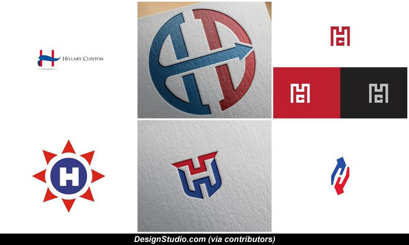 The first one looks like the printer ink leaked or something. As Mike Nellis noted via Twitter, the two in the center look like the logos/seals of Marvel/Bond villian armies. The one on the top right looks like it belongs to a luxury watch brand (which I'm guessing Ms. Clinton isn't going for), while the lower-right looks like a certain sexual position (although I'm guessing they were going for a "helping hand" theme). The one on the lower-left corner isn't too bad, actually.