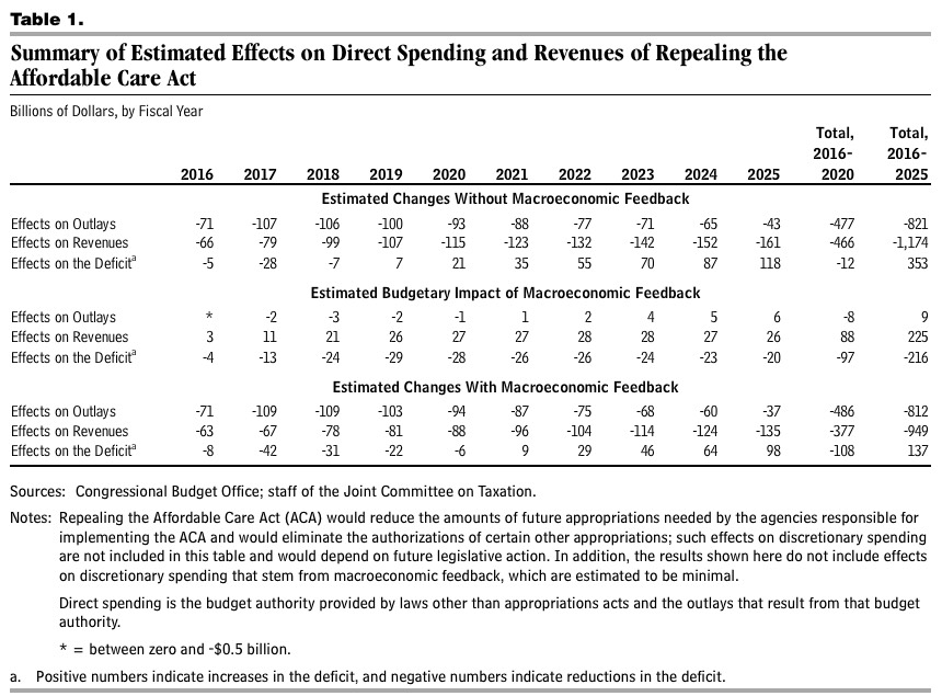 CBO: ACA repeal = Federal deficit increase of $353B (or $137B?) over next decade & NET loss of 24M insured