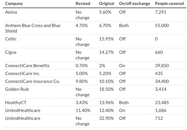 The four companies selling individual health plans through Connecticut’s health insurance exchange have revised their proposals to raise rates in 2016, seeking lower increases than initially proposed.