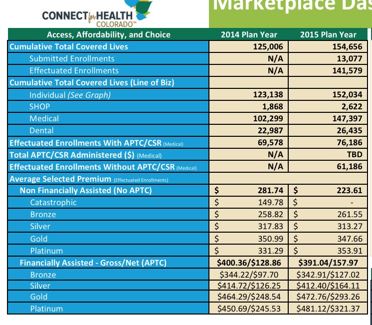 Colorado's official QHP selection total as of 2/21/15 was 140,327, and as of the end of April, it was up to 146,506...of which 129,055 were actually effectuated as of 4/30.