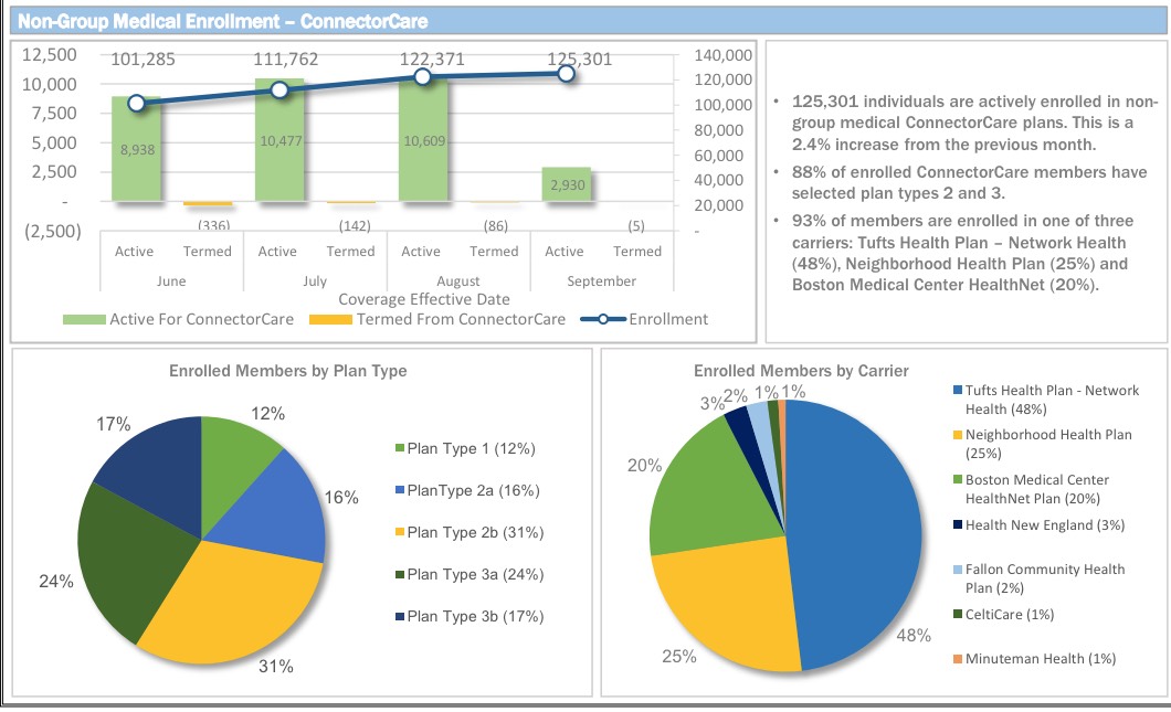 The Massachusetts Health Connector just held their monthly board meeting this morning, and have released the July dashboard report with a whole mess of demographic data for Baystate-obsessed nerds to revel in.