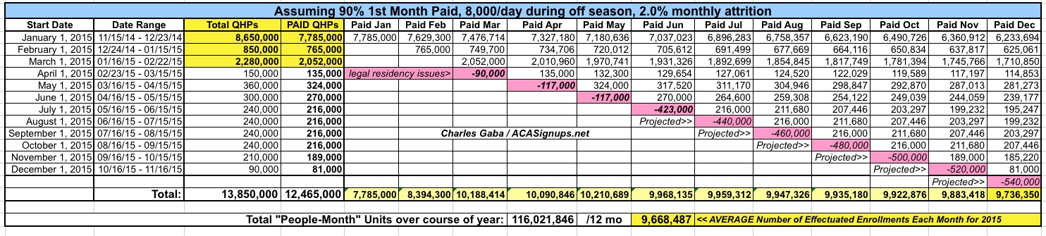 As for my full-year effectuated enrollment projection, here's what it looks like with the following corrections (click the image for a higher-resolution version):