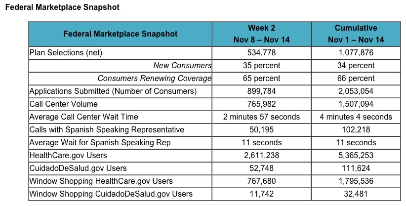 HHS will produce more detailed reports that look at plan selections across the Federally-facilitated Marketplace and State-based Marketplaces later in the Open Enrollment period.