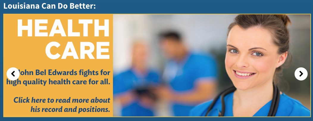 Healthcare in Louisiana is at a crossroads. Years of neglect and indifference from Bobby Jindal’s administration have caused serious damage to our healthcare system. As such, now, more than ever, our state needs a governor committed to the well-being of Louisianans – not someone beholden to political ideologies or chasing personal ambitions. Louisiana needs a governor who will make healthcare accessible to all citizens. In short, Louisiana needs a governor who will put Louisiana first. We need John Bel Edwards.