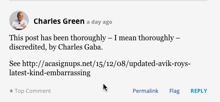 I also found it amusing that there actually is a reference/shout-out to me connected to the article after all...in the form of a "Top Comment" made by one Charles Green: