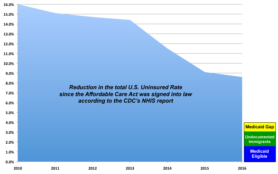 Yup, the 2016 Open Enrollment Period (along with continuing Medicaid expansion and, to some degree, the ongoing economic recovery) has shaved another 1.3 million off the uninsured tally.