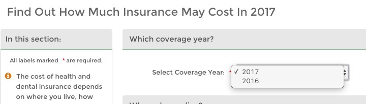You can shop around, but there's no "2017" option...and the financial assistance form still asks for 2016 income.