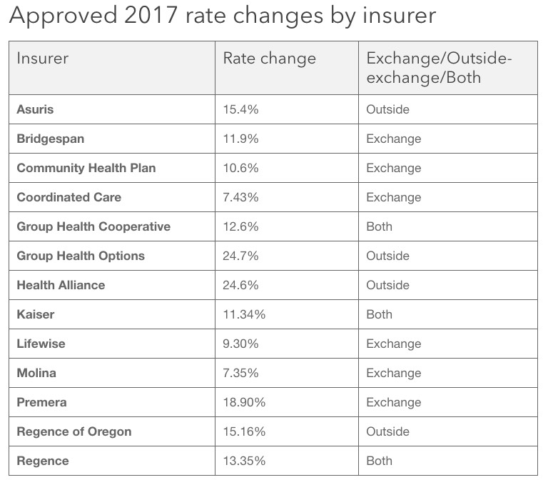 Thirteen health insurers have been approved to sell 154 individual and family plans for 2017. Nine insurers will sell 98 plans in the exchange, Washington Healthplanfinder (www.wahealthplanfinder.org), and seven insurers will sell 56 plans outside of the exchange. The average rate change is 13.6 percent.