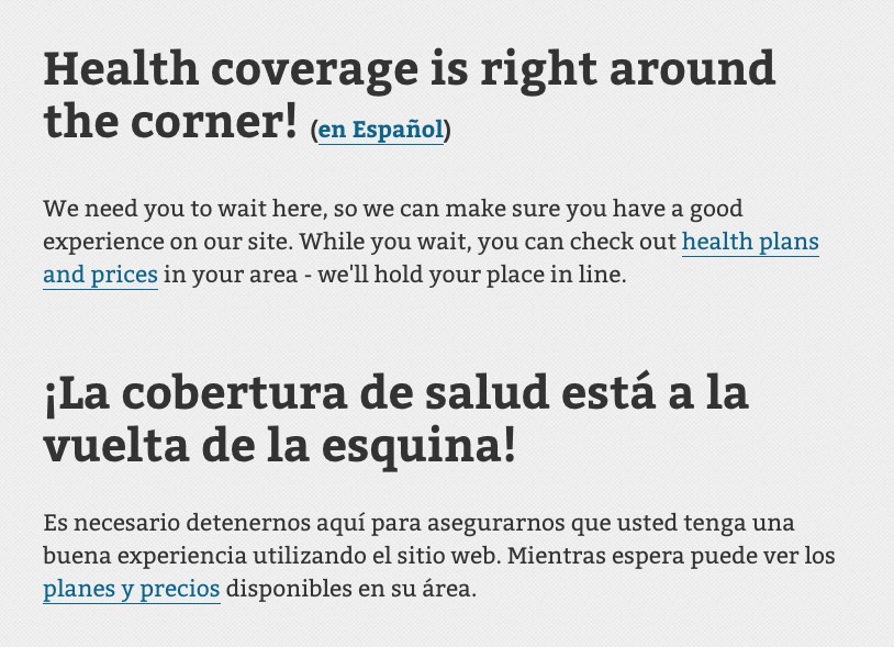 Well, assuming that this is all due to real people attempting to sign up, I might need to rethink that projection after all. I just visited HealthCare.Gov, and while the home page loaded quickly, clicking the "Log In" page brought up the Waiting Room screen:
