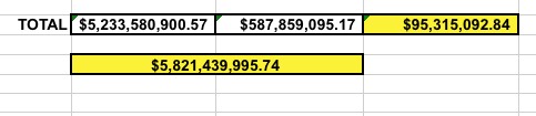 They also provided the dollar amounts for select major carriers, along with the national tally, which I've compiled into a table below: