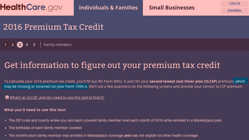 The short version is that it turns out that I had to go to this Tax Tool at HealthCare.Gov and plug in our information in order to find out what the heck the SLCSP (benchmark premium) actually was last year: $632.48.