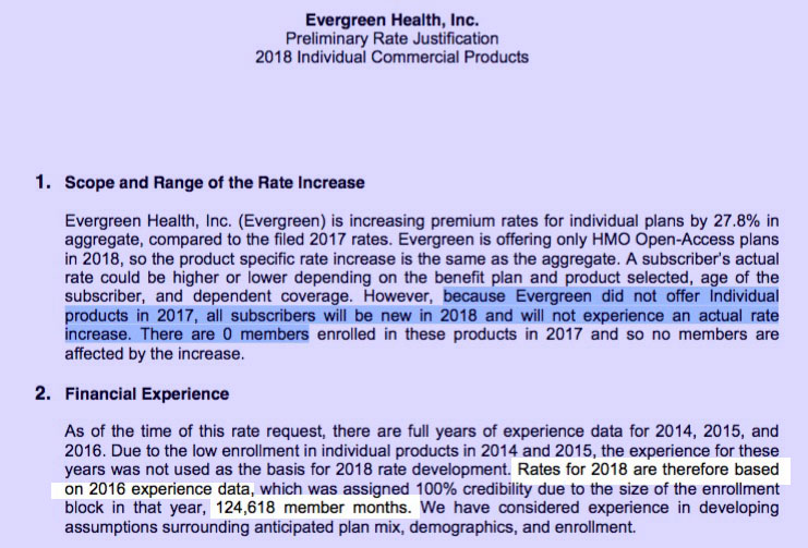 The initial 2018 filings for four of the six carriers are pretty straightforward. Two of them are a bit tricky, though: Kaiser Permanente and Evergreen Health.