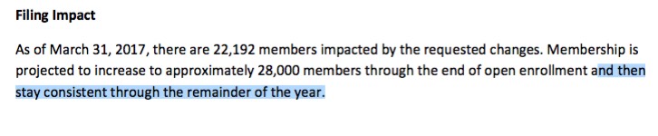 On interesting tidbit re. the Moda filing: They're expecting enrollment to increase by around 6,000 people (transfers from ATRIO perhaps?), and to then "stay consistent throughout the remainder of the year" which is odd since there's generally a good 20% or so net attrition rate every year. Huh.