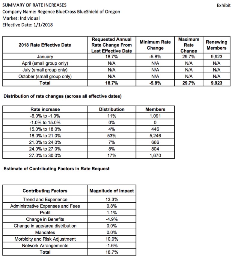 Overall, it looks like the unsubsidized weighted average increase being requested by Oregon carriers for the individual market is around 17.2%, while the small group market comes in at 8.2%.