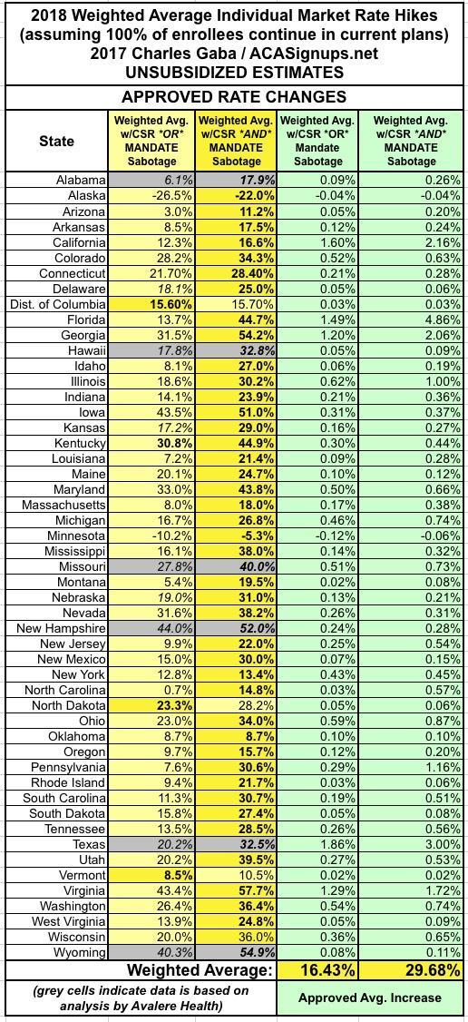 Damn, I was close. ACTUAL unsubsidized 2018 premium hikes confirmed to average 29 - 32% nationally