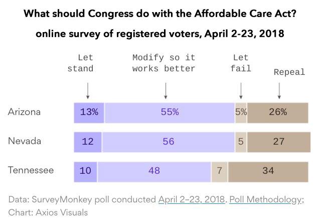 Why it matters: Arizona and Nevada are seen as the states where Democrats have the best chance in November to take Senate seats currently held by Republicans, and Tennessee is working its way up the list. One of Democrats' most unifying and effective messages this cycle is health care, and they'll be sure to campaign hard against the GOP's repeal effort in these states.