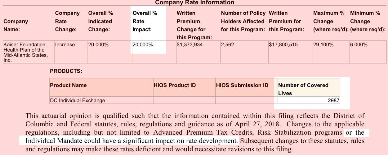 None of the carriers go into a lot of detail about the impact of either the ACA mandate being repealed or #ShortAssPlans, but two of them do make vague references and Kaiser (which also happens to be asking for the largest increase) does warn that it had a "significant impact" on their filing.