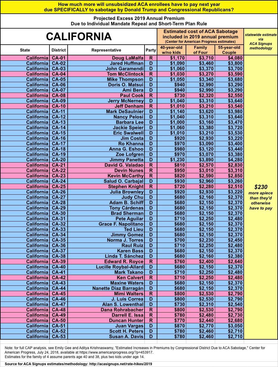 How much more will #ACASabotage cost unsubsidized enrollees in YOUR Congressional District?