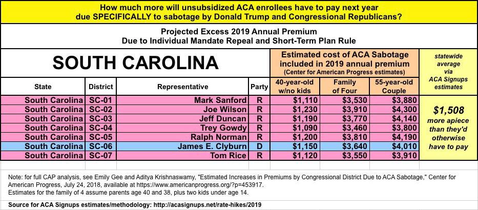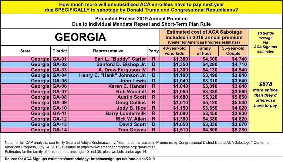 As they also know, last year and again this year I've expanded on this by breaking out the portion of the annual rate increase which can be tied directly to sabotage efforts by the Trump Administration and Congressional Republicans. For 2018, this boiled down to roughly 17 points of the total nationwide increase being sabotage-related. It varied greatly by state, carrier and plan, but nationally, I estimated that without last year's ACA sabotage efforts, average premiums would have gone up around 11% instead of around 28%.