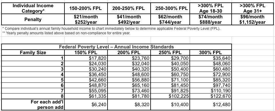 • If we earn $60,000/year (just under 300% FPL), we'd have to pay $2,232 (3x $744)