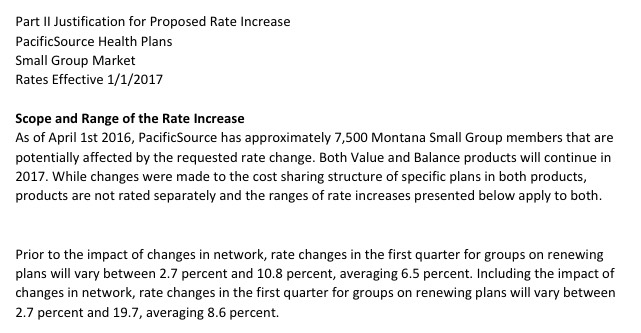 As for the actual requested rate hikes...ouch. BCBS is seeking a whopping 62% average increase, and since they own 70% of the individual market, that means a statewide weighted average of right around 50% even. Things aren't as ugly on the small group market, but that 27.5% average is still pretty ugly.