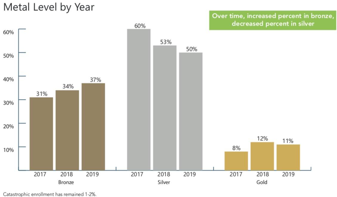 - Increased number of enrollees selecting bronze plans