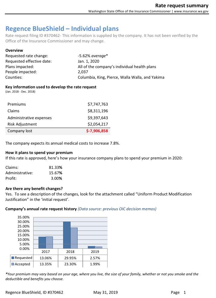 “Despite the Trump administration’s effort over the last two years to sabotage the Affordable Care Act, this year’s filings are evidence that our full adoption of the law and the steps we’ve taken to defend and preserve it are stabilizing our market,” said Insurance Commissioner Mike Kreidler. “We have more work to do to lower the cost of health care and to help lower out-of-pocket costs, but these proposed rates are welcome news.”