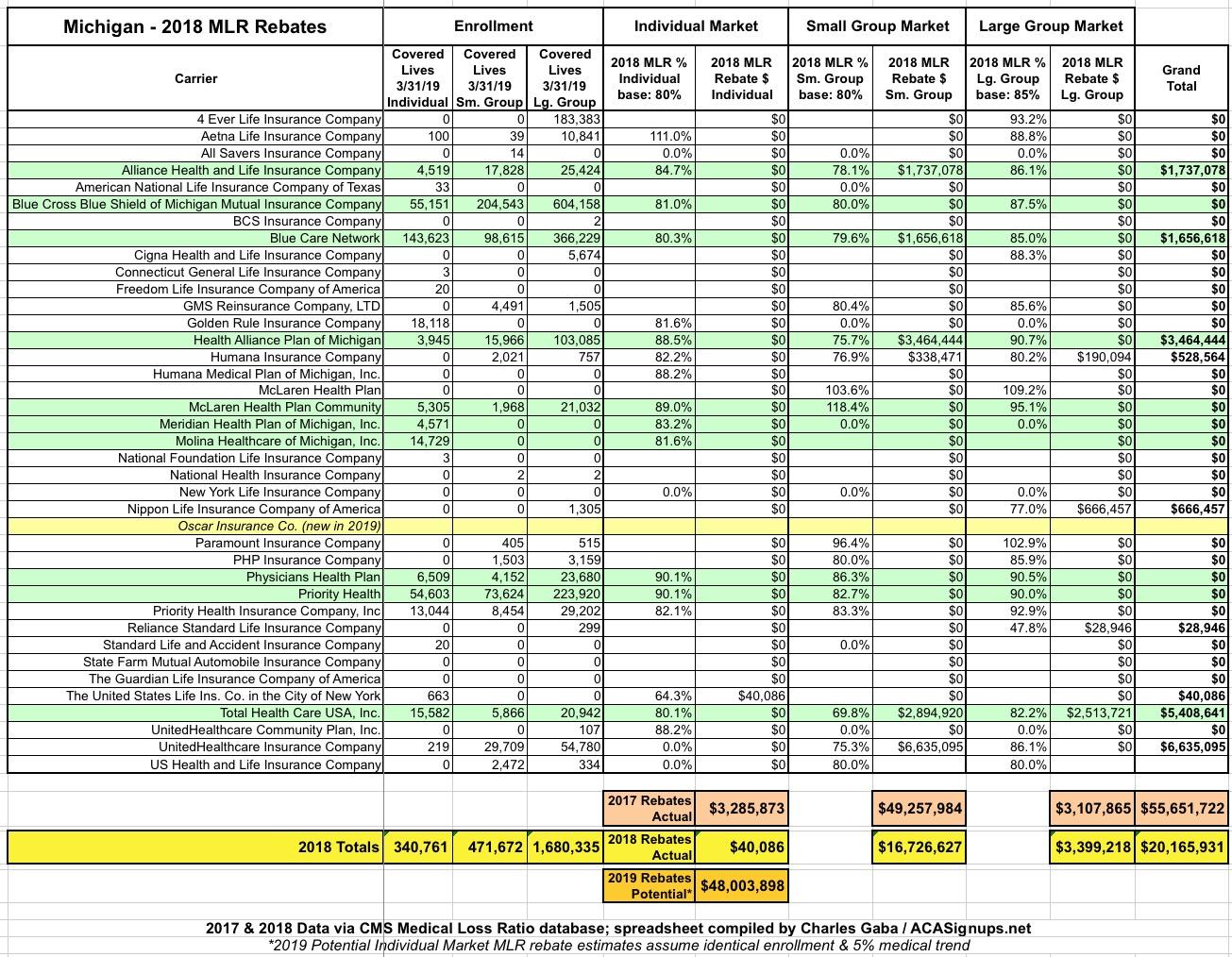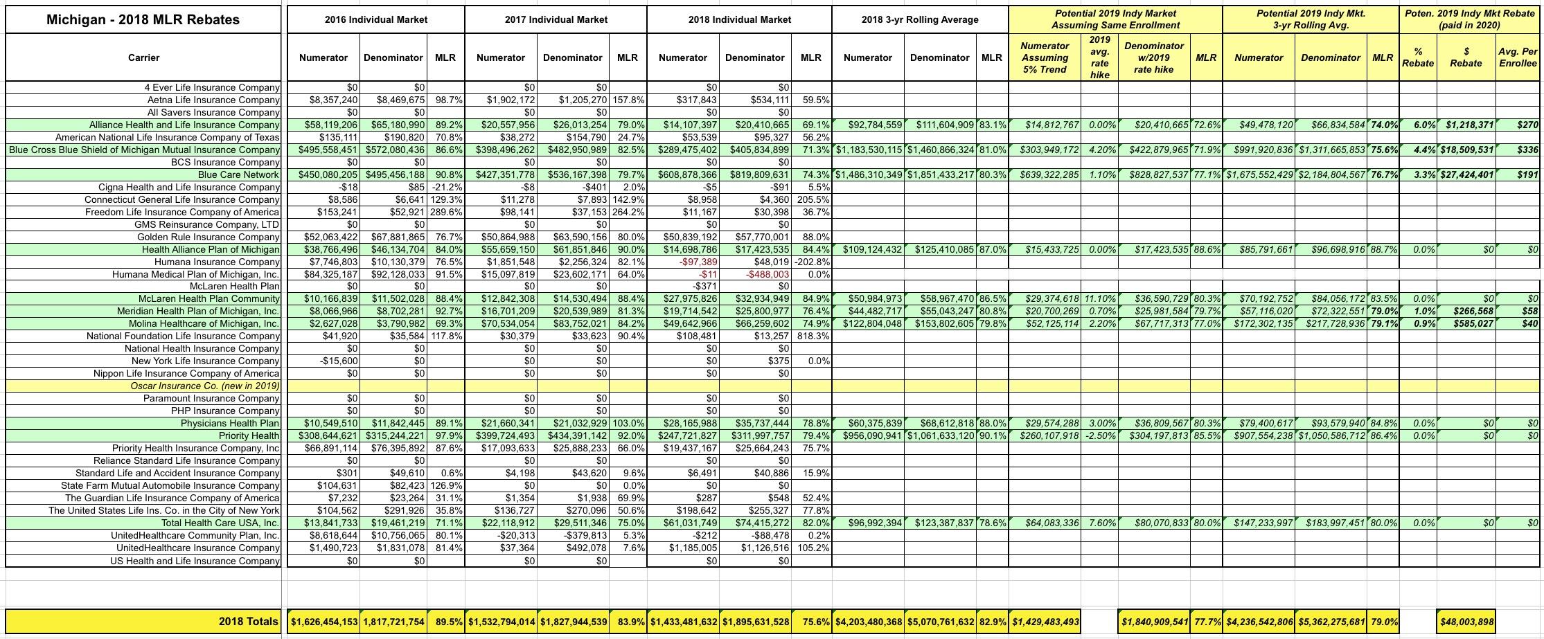 Exclusive! Michigan: 2018 MLR Rebate Payments (& potential 2019 rebates)