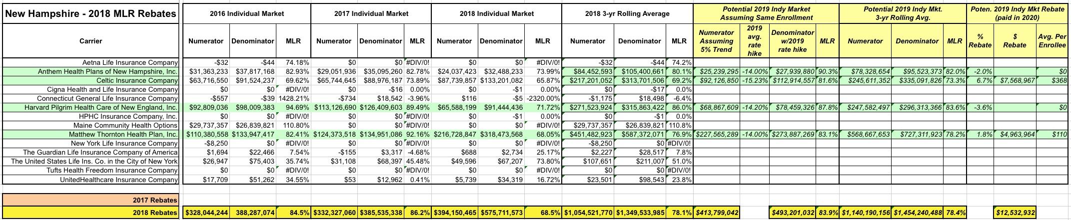 MLR rebate payments for 2018 are being sent out to enrollees even as I type this. The data for 2018 MLR rebates won't be officially posted for another month or so, but I've managed to acquire it early, and after a lot of number-crunching the data, I've recompiled it into an easy-to-read format.
