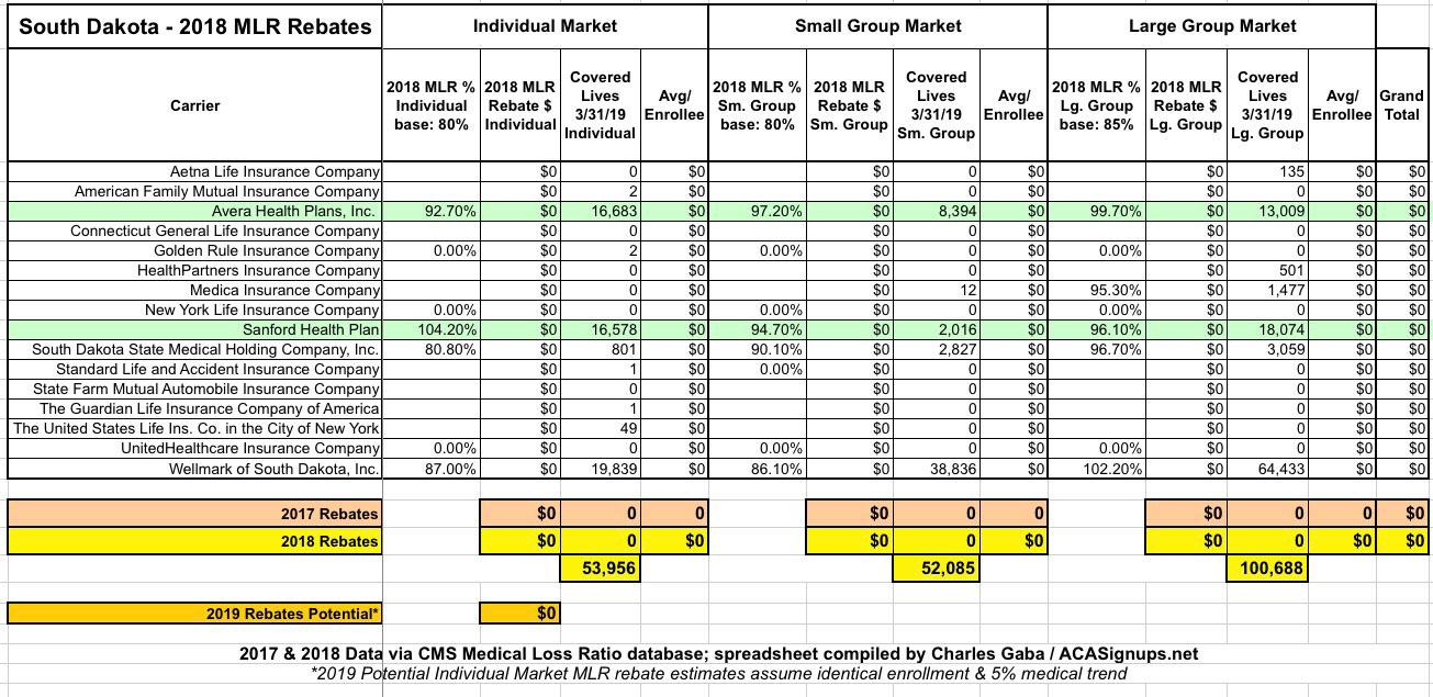 AGAIN: There's absolutely no guarantee that things will play out this way. It's possible that none of these carriers will make MLR payments next year, or only some of them will, or the amounts will be smaller. These 2019 projections are pure speculation on my part based on a number of big assumptions.
