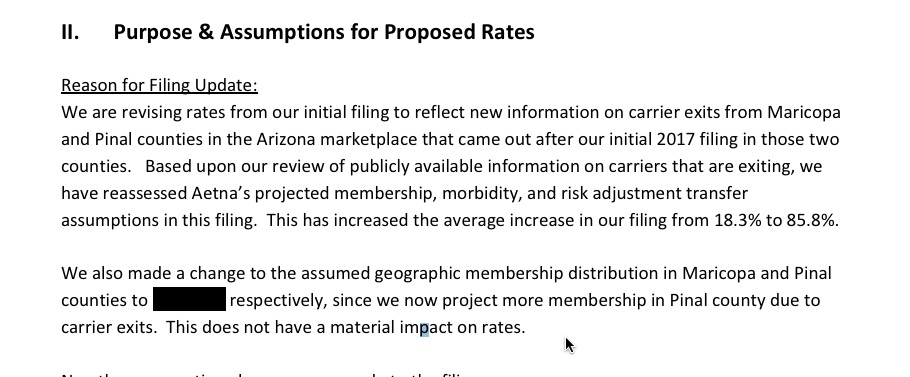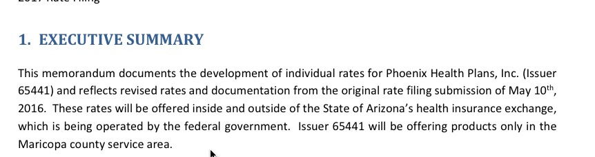Now, Aetna is staying in Arizona's off-exchange market overall, but how about Pinal County specifically? Well, according to their 2017 rate filing (and yes, this one is specifically for off-exchange policies only...they have a second one for the now-defunct exchange-based plans), it certainly looks like it: