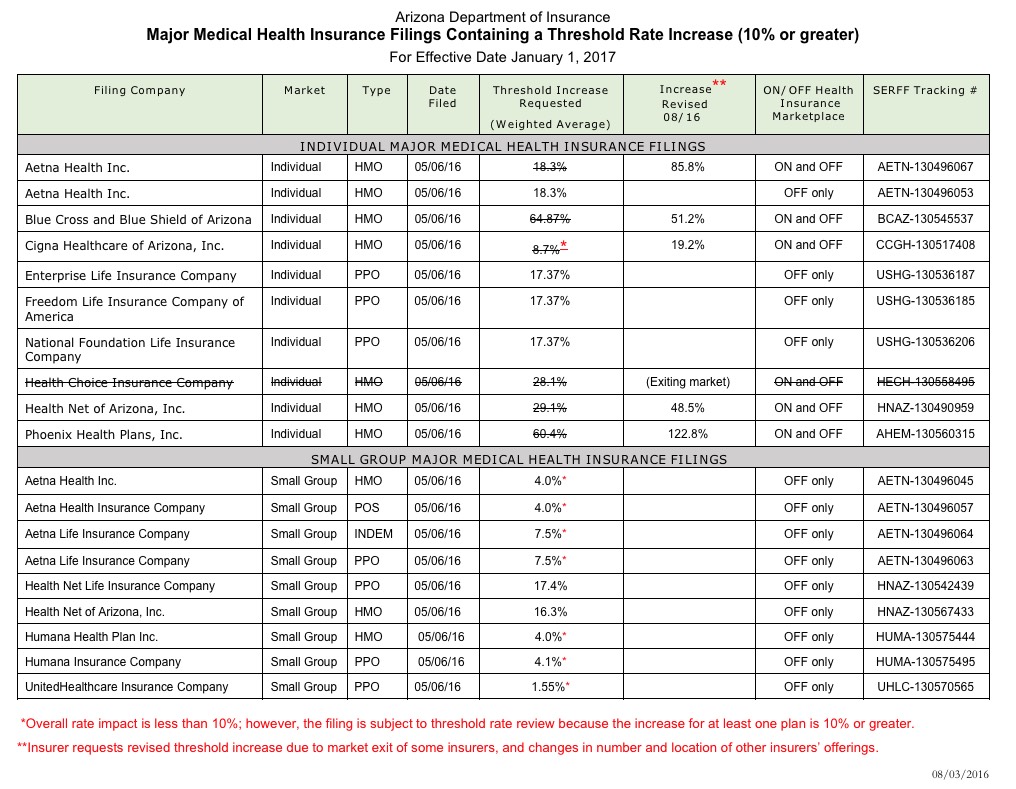 The "some off-marketplace options" may include any or all of the following, according to the latest update to the AZ DOI filing summary: