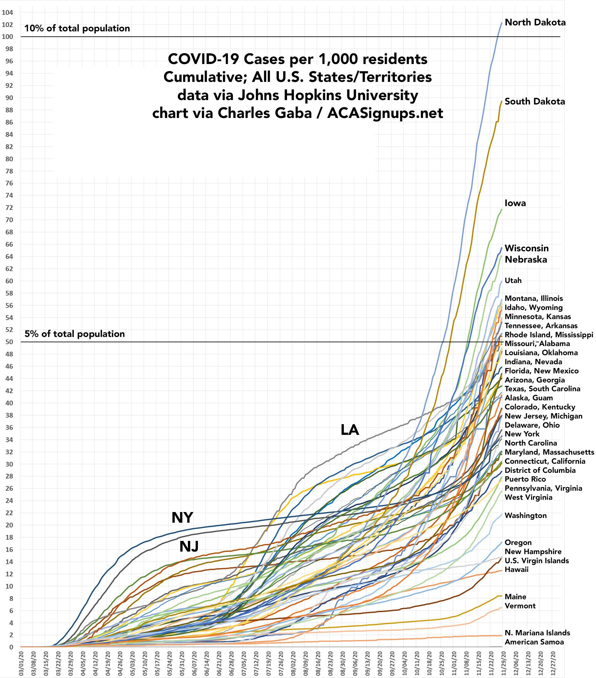 COVID will likely have killed 1 out of every 500 New Jersey residents by the end of the year...but there are four other states where COVID-19 has killed at least 1 out of every 750 residents (New York, Massachusetts, Connecticut and Louisiana), and five others, which have all lost at least 1 out of every 1,000 residents to the pandemic, are about to join that club (Rhode Island, Mississippi, North Dakota, South Dakota and Illinois).
