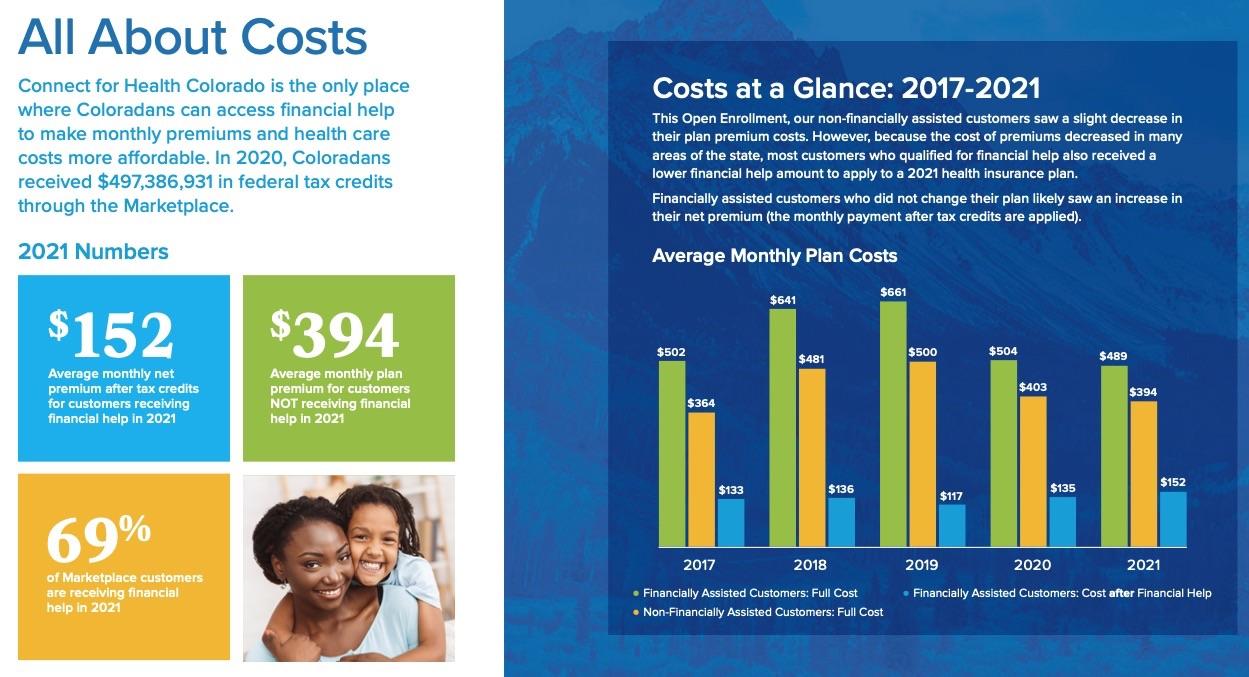 • People who use Connect for Health Colorado can qualify for financial help and save money on health insurance costs. On average, people who qualified for financial help for this year are paying $152 per month for their health insurance coverage.
