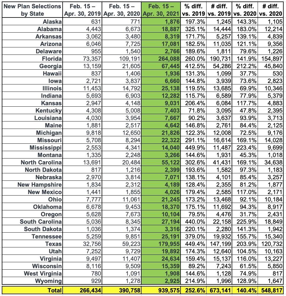 With all of this in mind, the 940K figure above probably represents more like 80% of all SEP enrollments so far, which would make the national total as of 4/30 more like 1.1 - 1.2 million.
