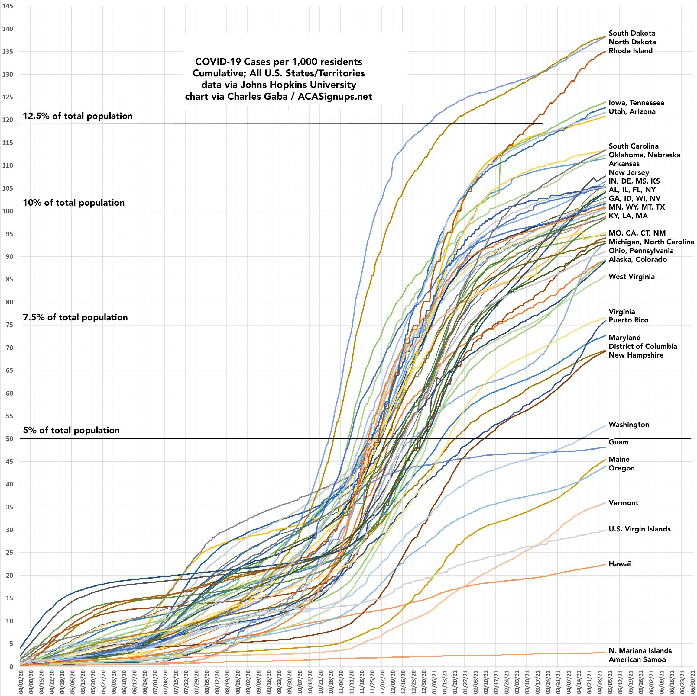 Nearly 1 out of every 7 residents of South Dakota, North Dakota and Rhode Island have tested positive for COVID-19 to date.