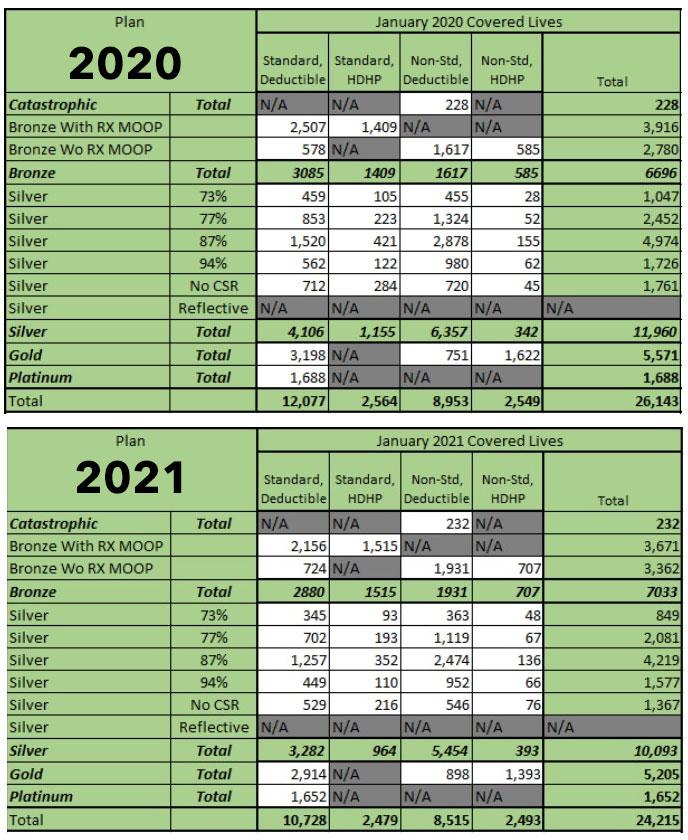Separately, VT Health Connect just released their 2021 Open Enrollment Report. Total Covered Lives as of January totalled 24,215 people, which is down 7.4% year over year vs. the 26,143 reported during the 2020 Open Enrollment Perod (OEP).