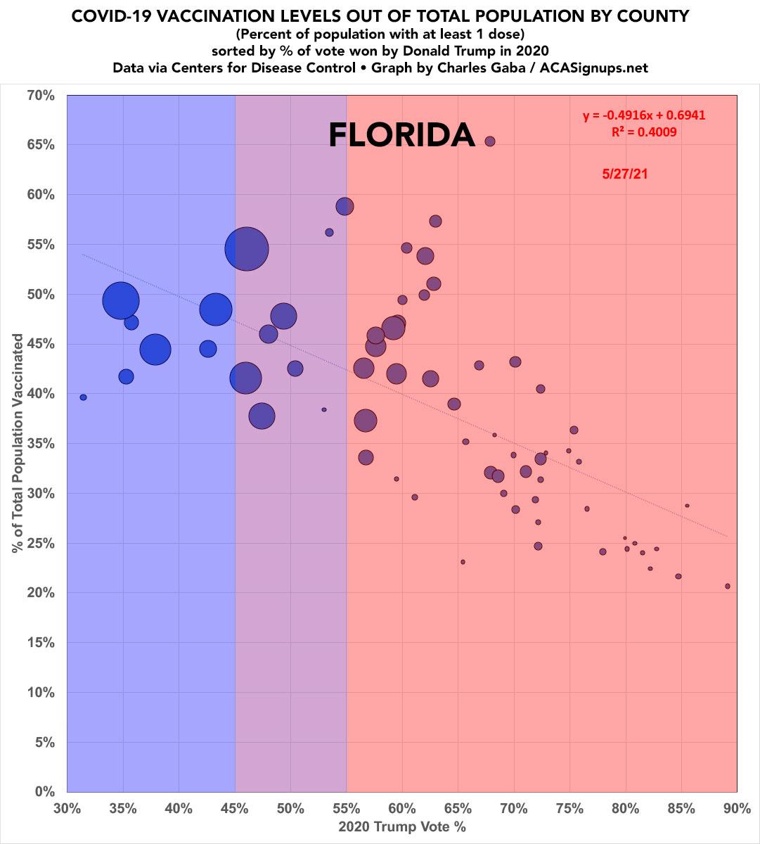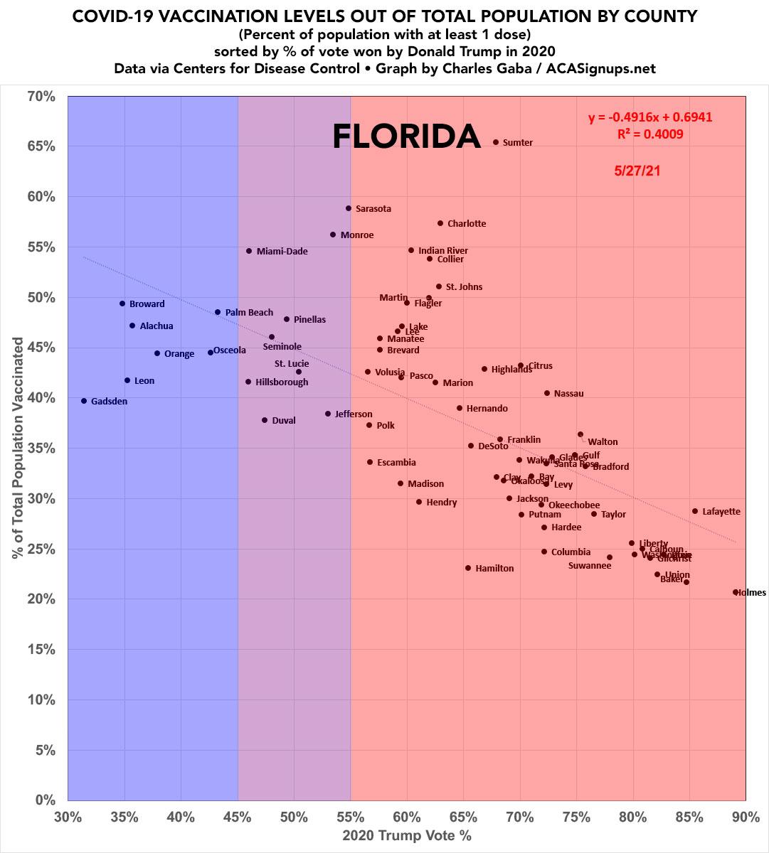Florida: #COVID19 vaccination rates by county & partisan lean