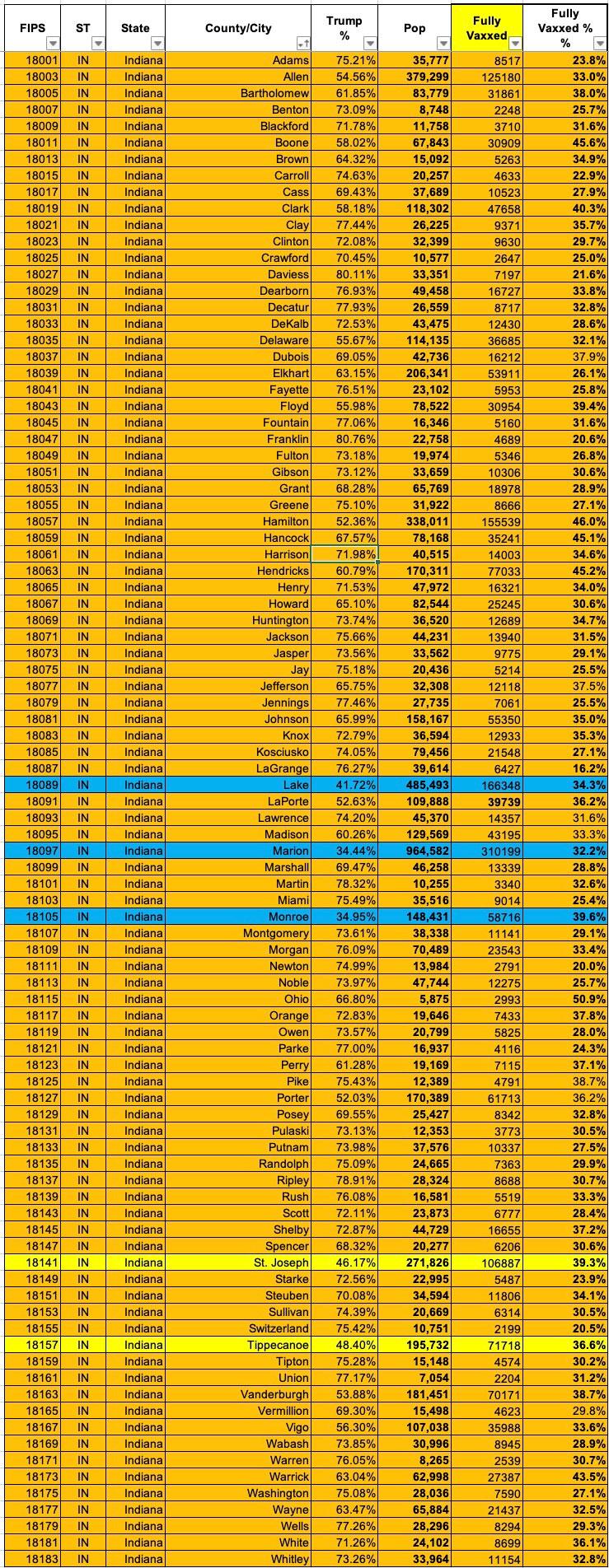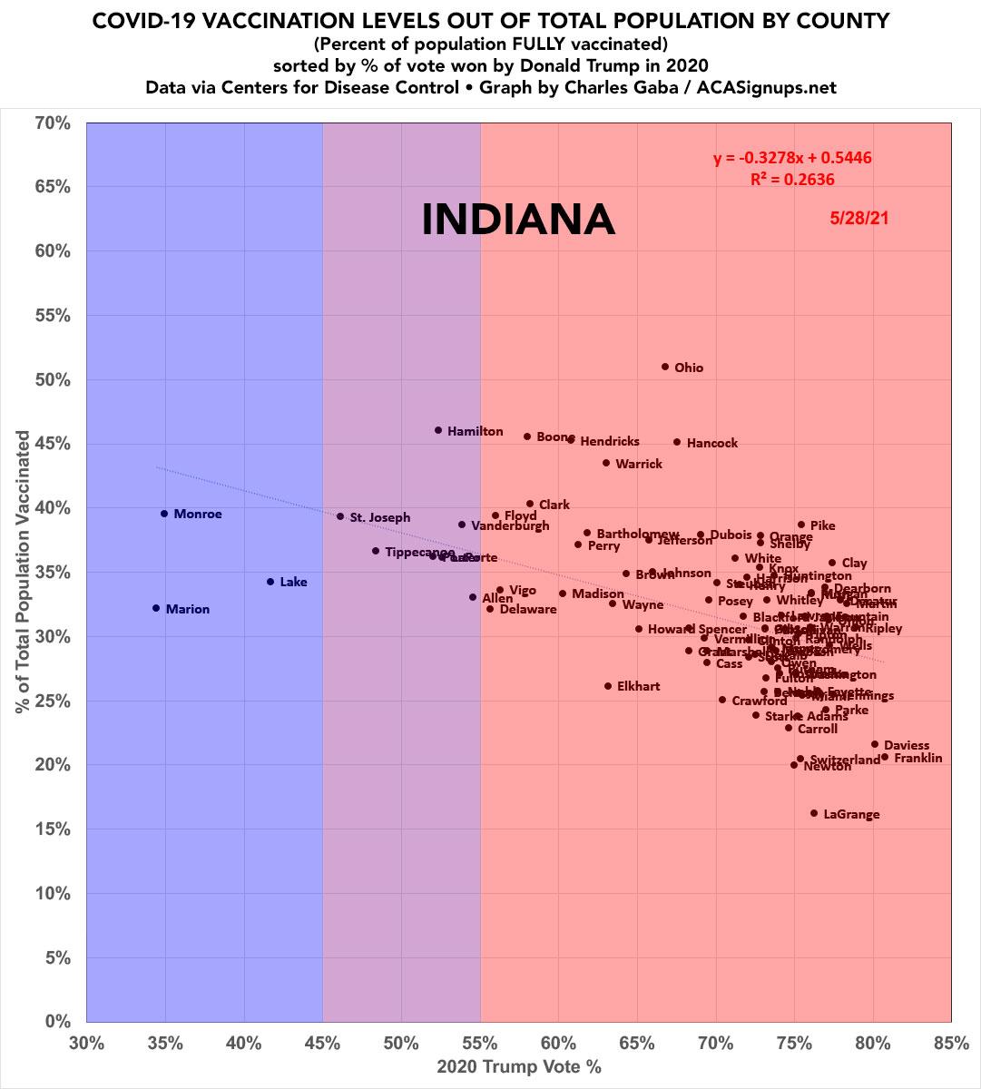 Indiana: #COVID19 vaccination rates by county & partisan lean