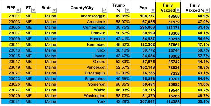Maine: #COVID19 vaccination rates by county & partisan lean
