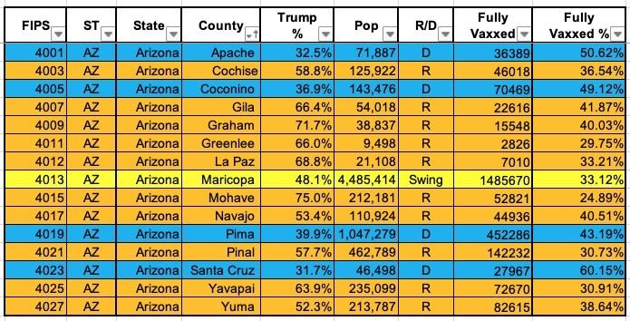 Arizona: #COVID19 vaccination rates by county & partisan lean