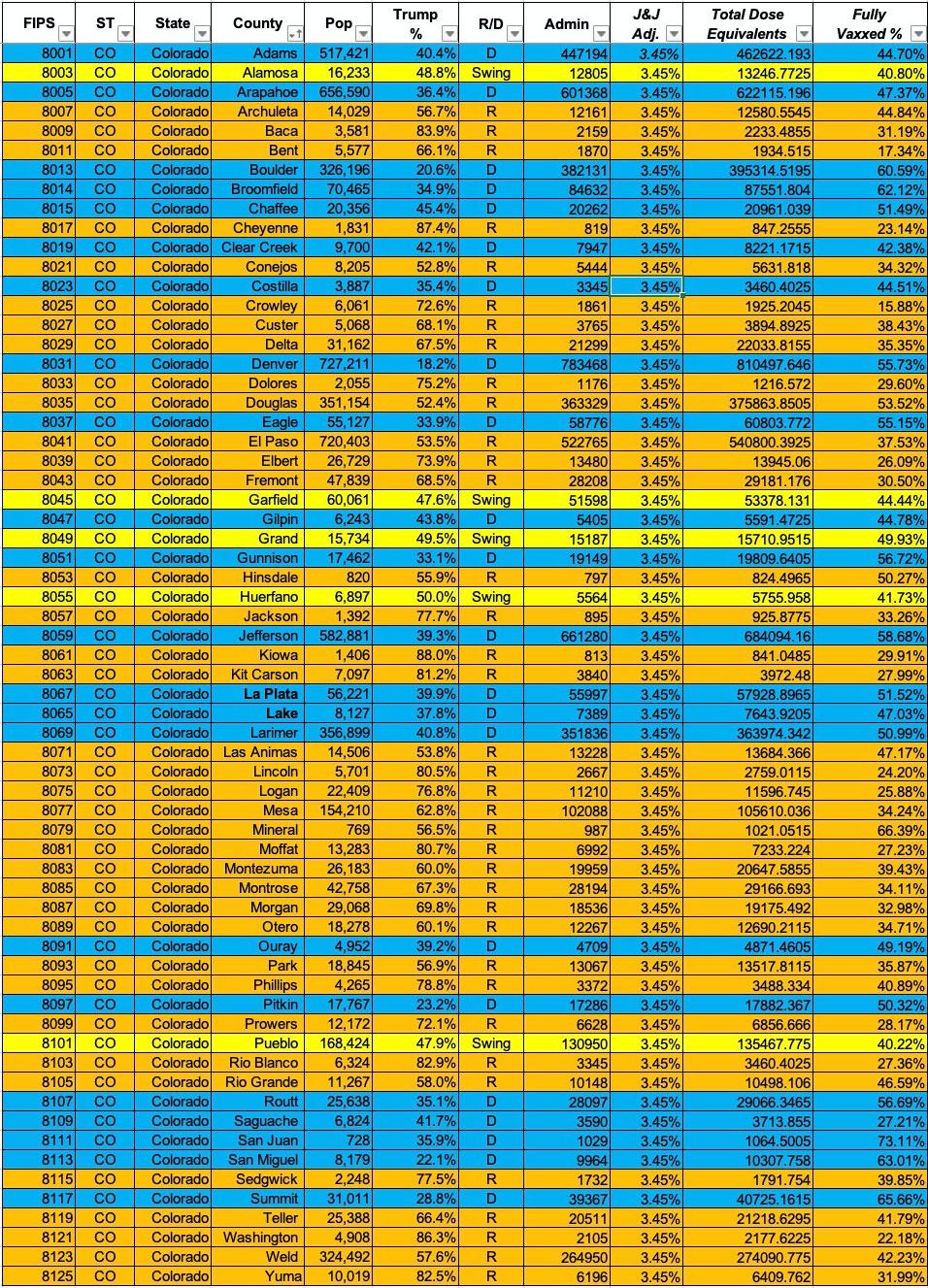 Updated: Colorado: #COVID19 vaccination rates by county & partisan lean