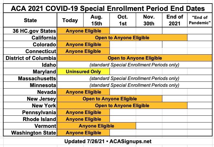 Most states have re-opened enrollment through 8/15, but the dates vary in some states: