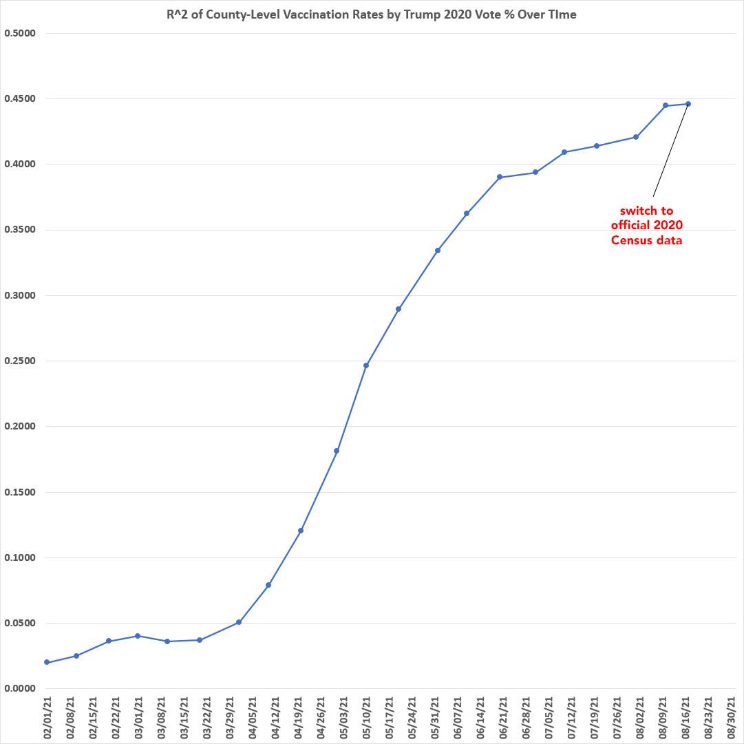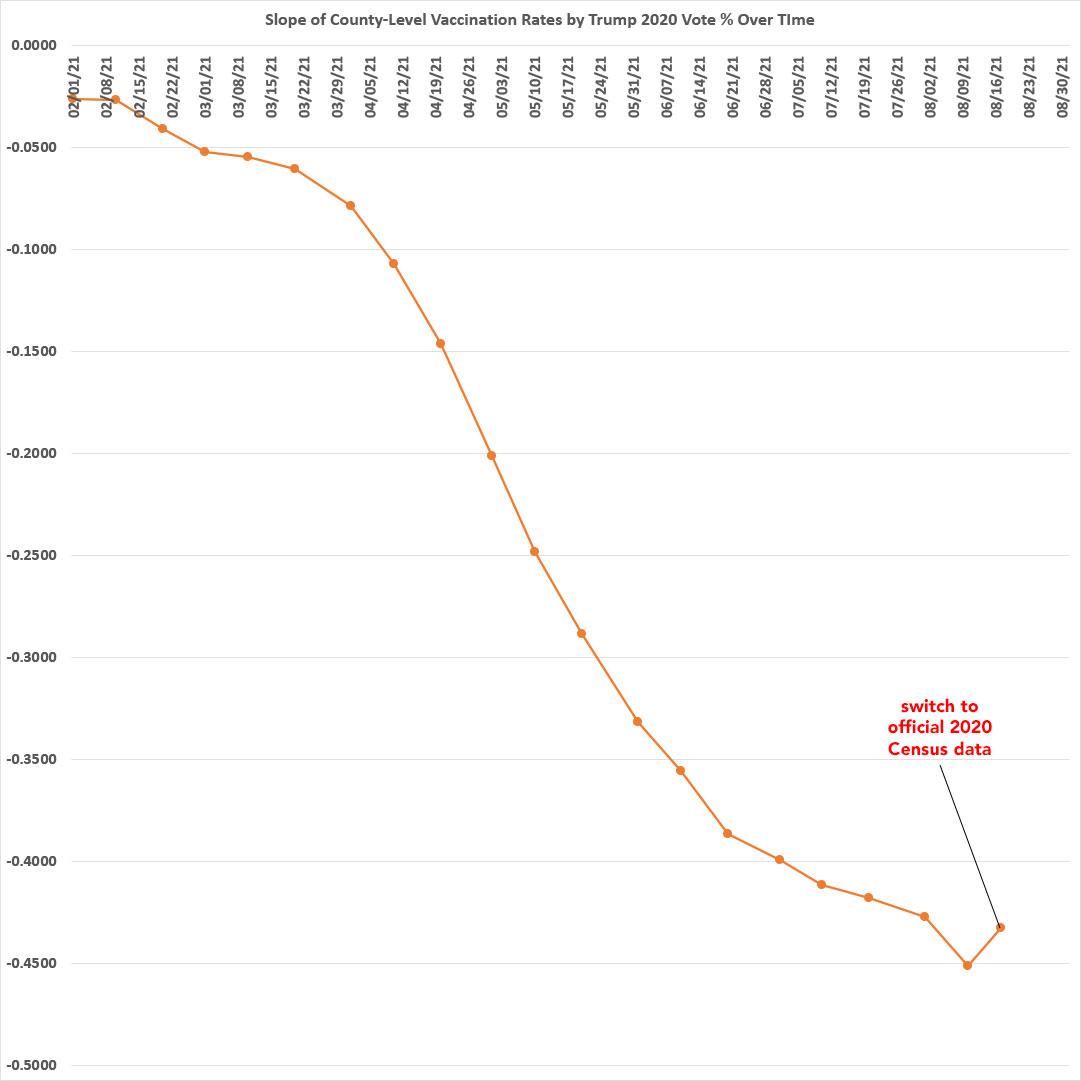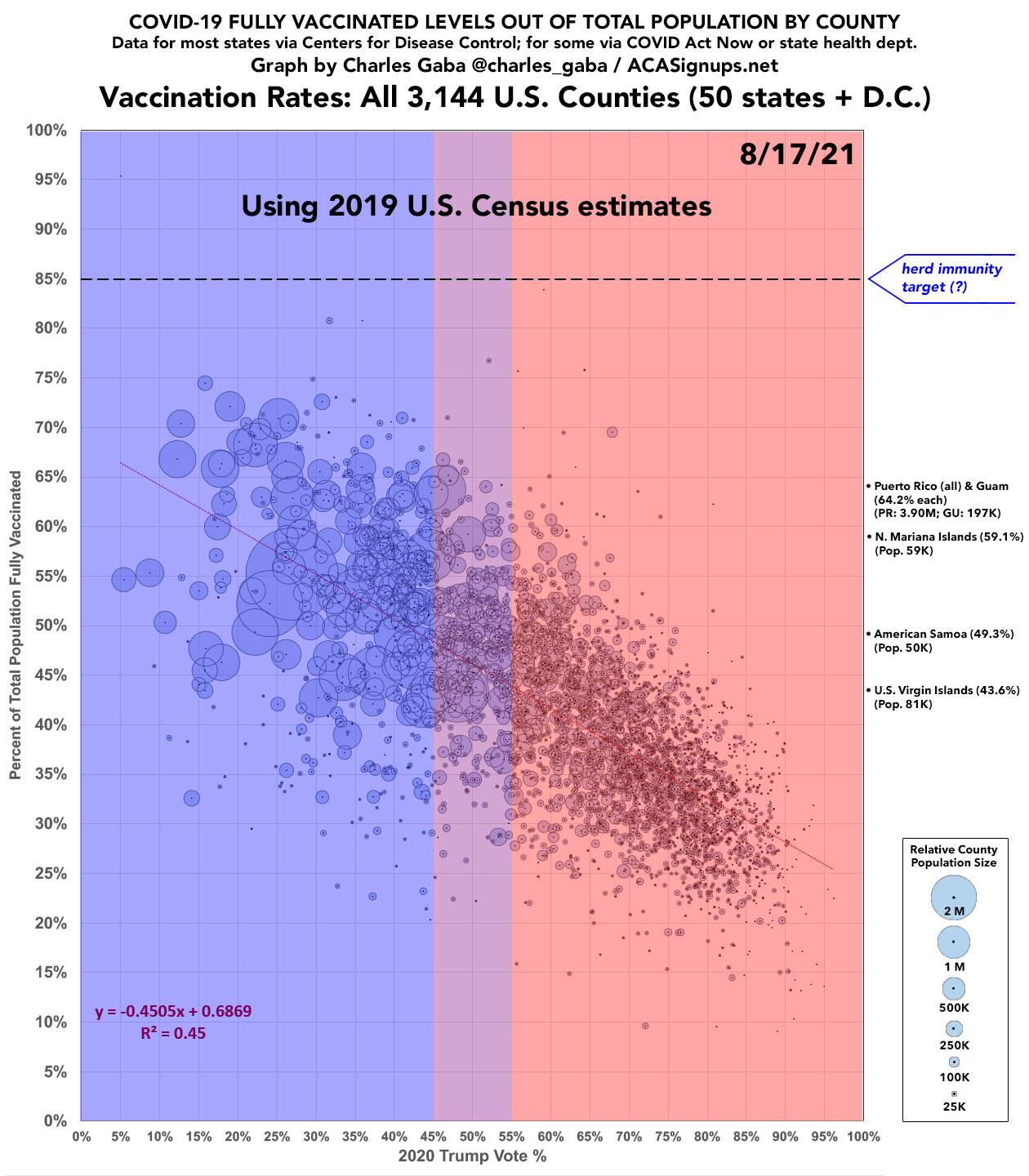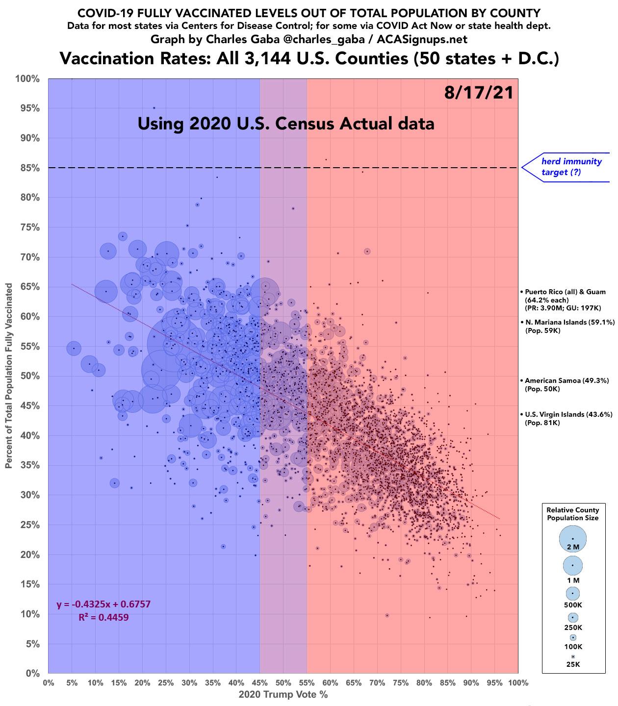 Weekly Update: U.S. #COVID19 vaccination levels BY COUNTY & Partisan Lean (now w/2020 Census data!)