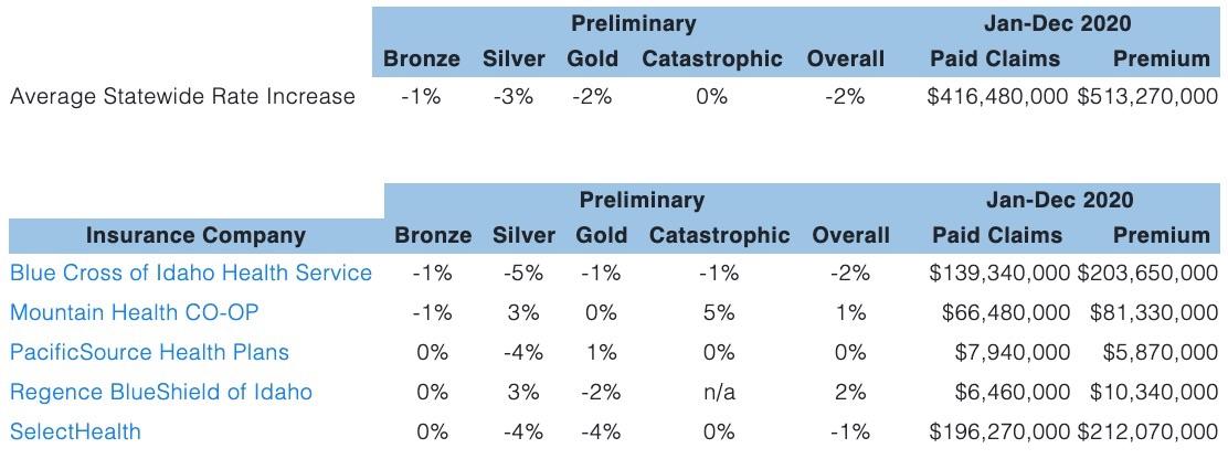 UPDATE 10/19/21: The Idaho DOI has issued their final rulings, and the approved average rate filings are somewhat different from the preliminary requests...except that the statewide weighte average ends up being exactly the same according to the DOI anyway, which is a bit odd...